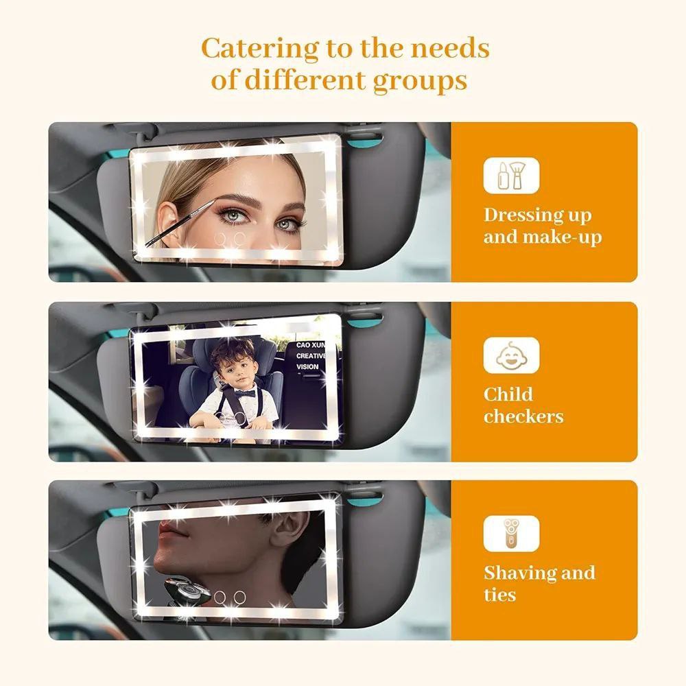 حوّلي كل رحلة بالسيارة إلى لحظة جمال مع مرآة المكياج المضيئة LED المصممة خصيصًا لمنحك إضاءة مثالية ولمسة مكياج دقيقة أينما كنتِ! 🚗💄💕